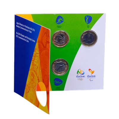 Tanto as moedas das Olimpíadas quanto as das paraolimpíadas também foram lançadas em cartelas (blisters) como a mostrada abaixo, exclusivamente para colecionadores: