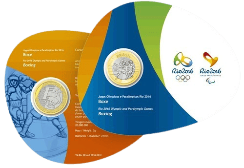 Especificamente para as Olimpíadas do Rio 2016, o Banco Central do Brasil lançou um total de 36 moedas comemorativas, divididas em três tipos de acordo com o material de fabricação: